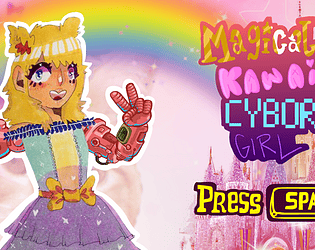 Magical Kawaii Cyborg Girl fighting mutant rabbits with her cyborg arms