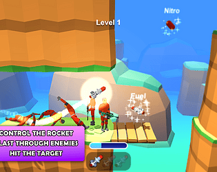 2D rocket shooting Unity template with aim-and-fire controls, enemies, effects, and mobile-ready gameplay.
