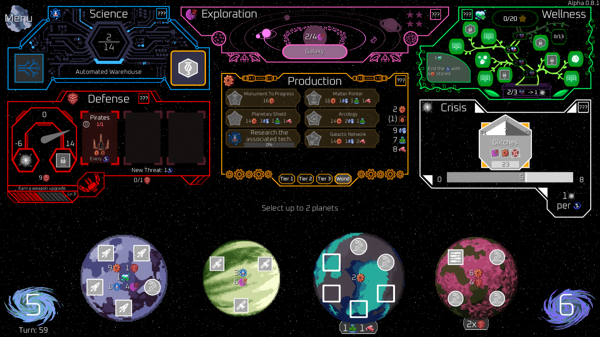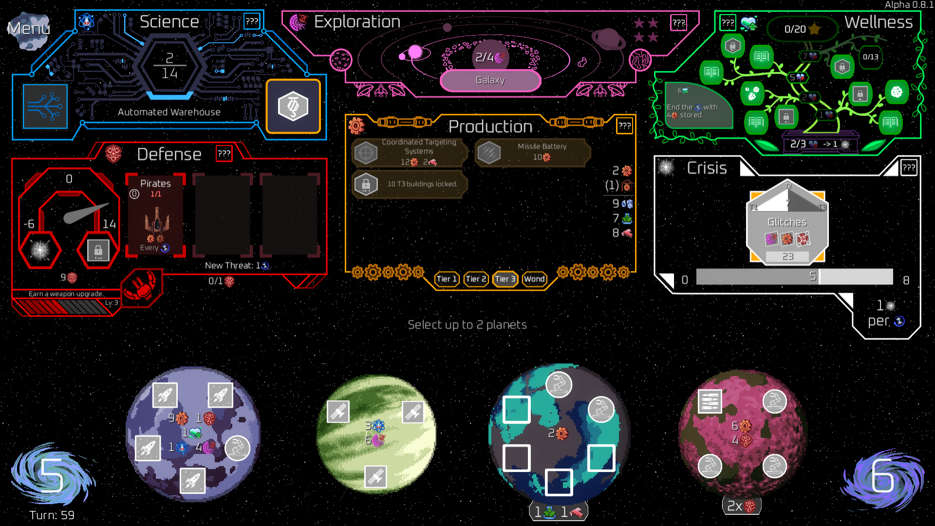 IDK if glitches are supposed to apply to wonders so I put that in just in case. No buildings are visibly affected by glitches and it seems that only the first turn of glitches actually works. All 4 of these are on the same turn, and I had only unlocked 8 T2 buildings.