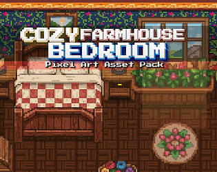 Create warm rustic interiors with this cozy farmhouse bedroom pixel art.