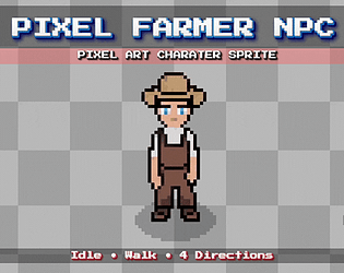 A 64×64 pixel farmer character sprite sheet with idle and walking animations.