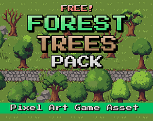 A versatile 32x32 pixel art tree pack featuring multiple forest tree variations for top-down RPGs and game projects.