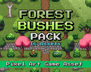 A collection of pixel art forest bushes designed for top-down games.