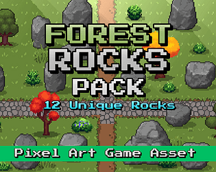 A collection of stylised pixel art rocks for top-down games.