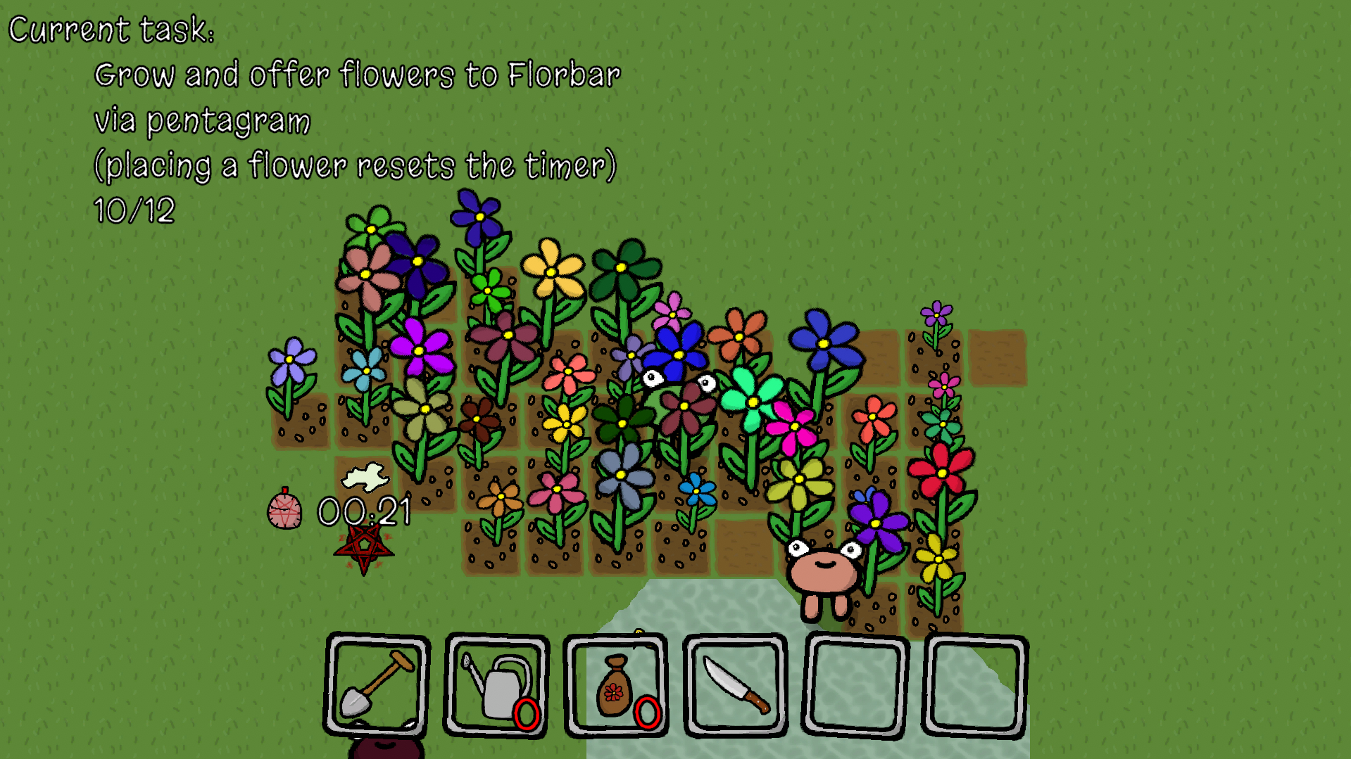 This was an amazing experience. I loved the twist partway through! xD felt soo bad though. My only complaint is that Florbar wanted a white flower and I planted an entire field using all the time I had and didn't get a single one, which ended the run and made me have to restart. Other than that I had a lot of fun getting the different endings! Incredible job :P