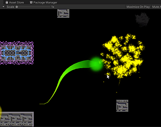 I ultimately decided to hold on fixing the sprite. I might go back to it later or ultimately end up using a generic rotating top-down sprite with animated legs. Before I wasted too much time on that I decided I need to work on the game's foundations and just put in a simple square to represent the player. I spent most of yesterday fiddling with godot's animation player and playing with particle settings. I hope to add some more juice to it before completion, but this is a solid foundation