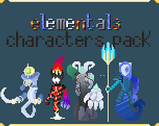 a character asset pack ,contains 4 characters , fire elemental, stone elemental, water elemental, air elemental