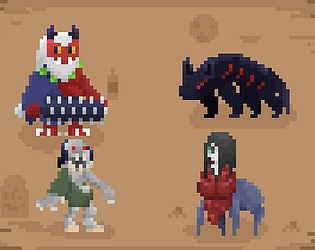 game asset of 3 creatures based on japanese folklore