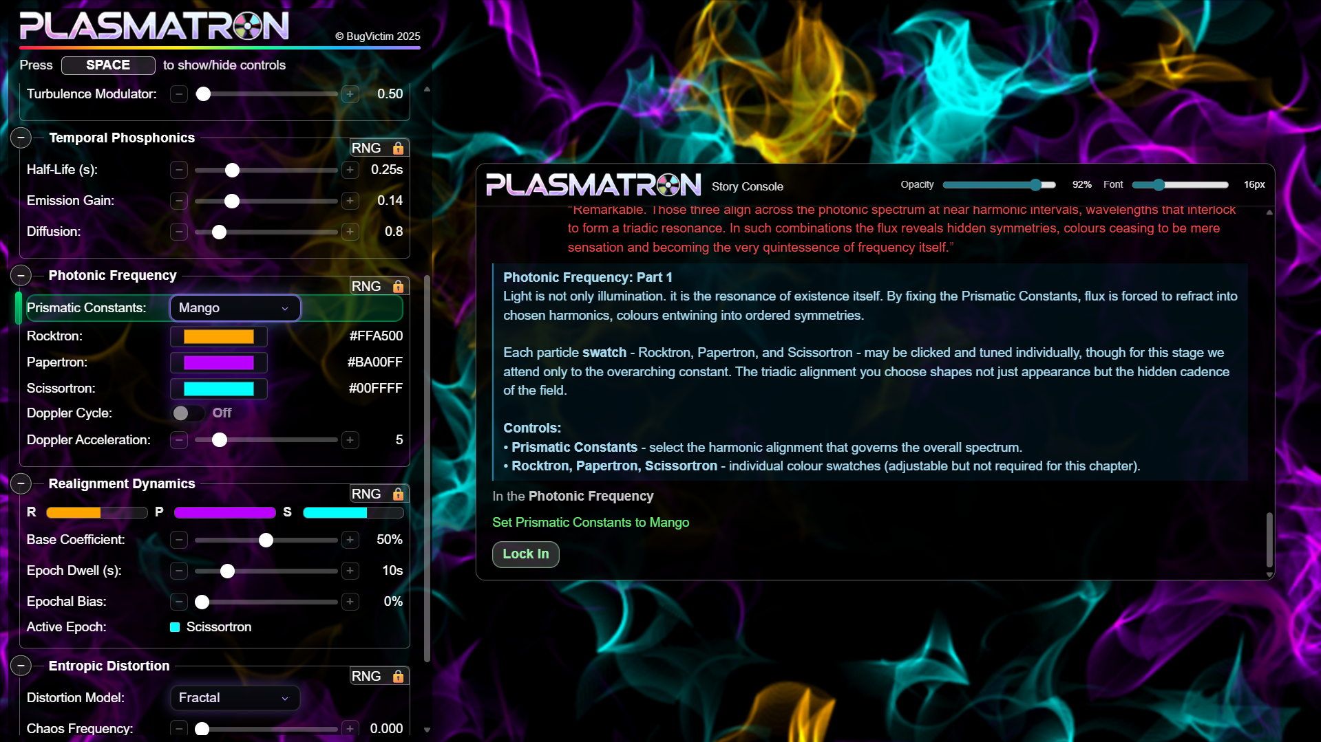 Here's my new game Plasmatron. It has a story mode where you try to beguile funding for scientific research with pretty visuals, which acts a tutorial for how to operate the psychedelic animated plasma generator. Or just play around in freeform mode for a chill time experimenting or flicking though presets.