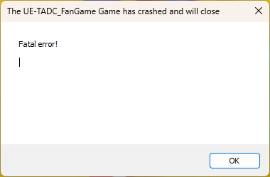 First of all, this game looks phenomenal! However, when trying to play the game for myself, it just keeps crashing over and over :/. My game runs smoooth as butter, but can't even last 2 minutes before crashing (Fatal Error!). The moment my game crashes is completely random, though. My AMD Bug Report Tool gave a message too: "AMD software detected that a driver timeout has occurred on your system.". I followed the advice of creating a shortcut of the exe, which makes the game waaay to dark lol. I'm def not a computer nerd here, but I feel like this game wasn't made with AMD in mind. Some others seem to have this issue too. No pressure, but do you mind fixing it in an upcoming patch? I'd love to experience this fantastic project too :)