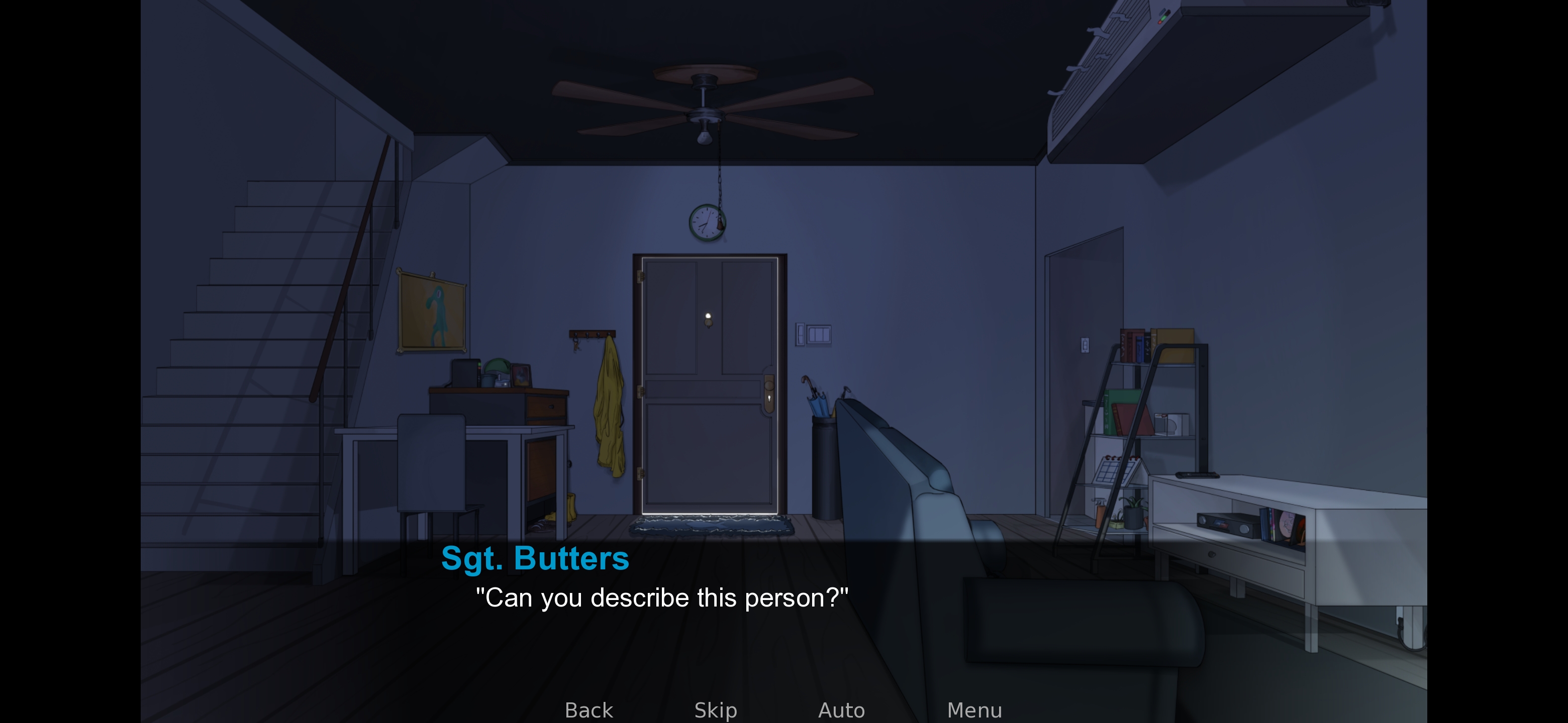 Rasks route, I'm going to guess this is a bug. No sprites appear when you're talking to the officers.