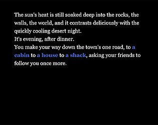 A short and simple Twine game made with the week one prompts from Yeehawgust.