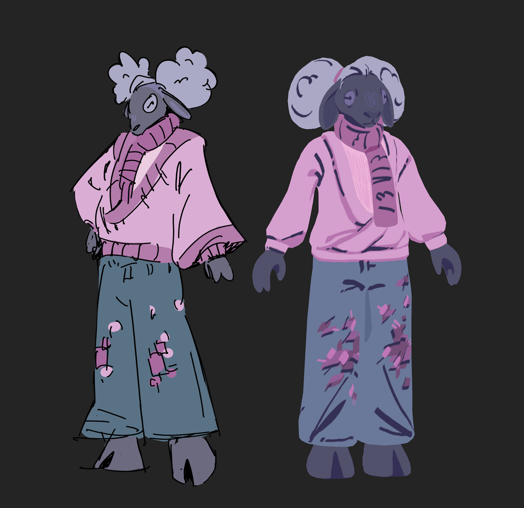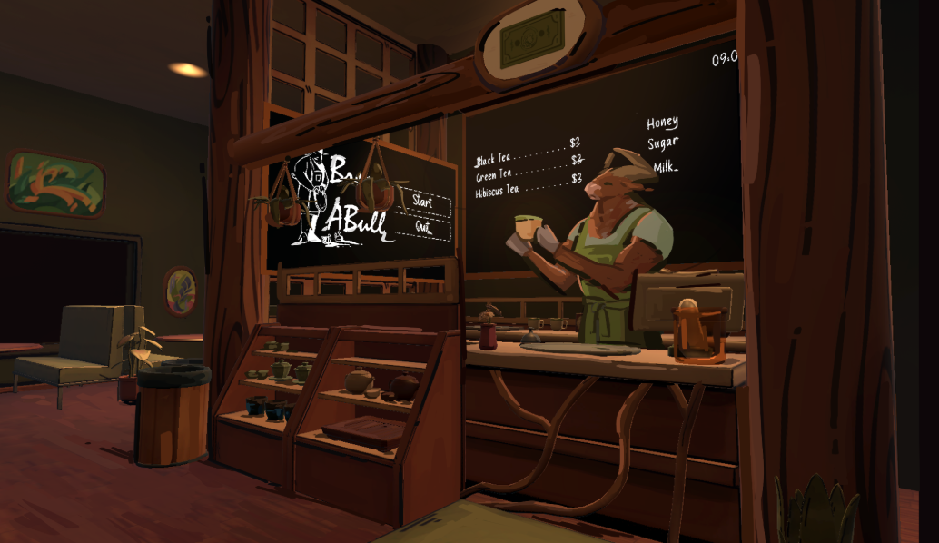 Meet the sheep! They are one of the first customers visiting the tea shop and they love all sorts of tea but a simple earl grey with sugar or honey is their favorite. Their trendy outfit reflects their taste in thrifting which is winding even for the most active shoppers. That's why the sheep loves to stop by for a cup of tea at the their favorite bull-run-business on their way home.