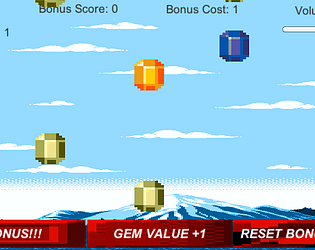 Overall, I liked the 8-bit feel of the game, and enjoyed the music and visuals. However, the reset score to increase PPC button doesn't work. No matter how many times I clicked the button, my ppc always stayed at 1. Also, the "Random Bonus" button always increased my score by 2, it wasn't a random increase. I did like how the "Random Bonus" button moved every time I clicked it, even though it seemed to stay in a pretty small area around the other buttons, which I did not like. The gameplay felt unfocused, and the UI felt cluttered. The "Random Bonus" button also seems to trigger at the beginning of the game, so you always start with 2 points. But overall, it was a solid start.