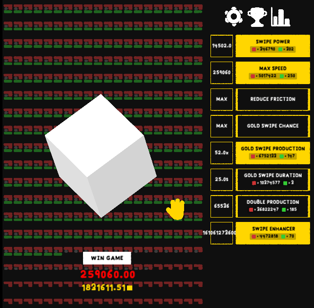 Add 3 New Upgrades (Diamond Swipe Chance, Diamond swipe production, Diamond swipe duration.) All upgrades have x^2 (starting at 1^2) cost. (x increases by 1 every upgrade)