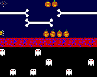 I appreciate the feedback, also I'm proud of the art, even tho most of it is really similar to frogger art. As for the pumpkin rafts, I made them dip down less frequently and also made it so the frog moves with the platforms, as well as slowing them down a bit. I'll try and make it so you die later in the animation when I work on this some more tomorrow, but for now the game should be possible to complete, tho there is currently no win condition, so you can just win in spirit until that is implemented.