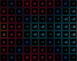Click on a square to reduce or increase its value, but be careful: it also affects its neighbors.