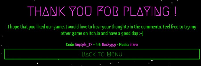 Cool game and cool atmosphere, congrats on your first finished game 🙏