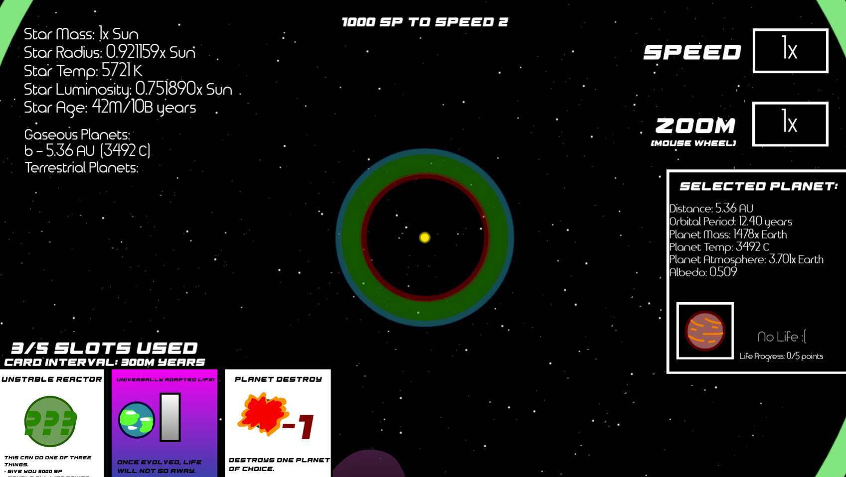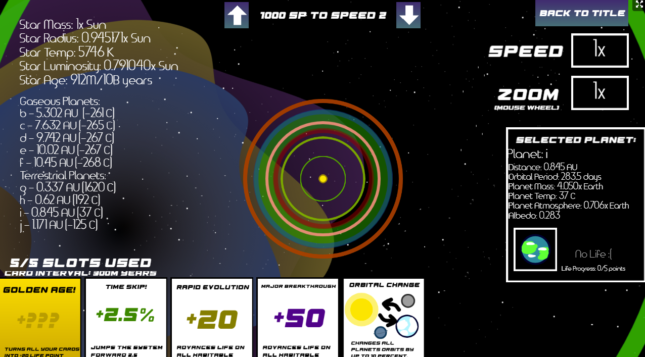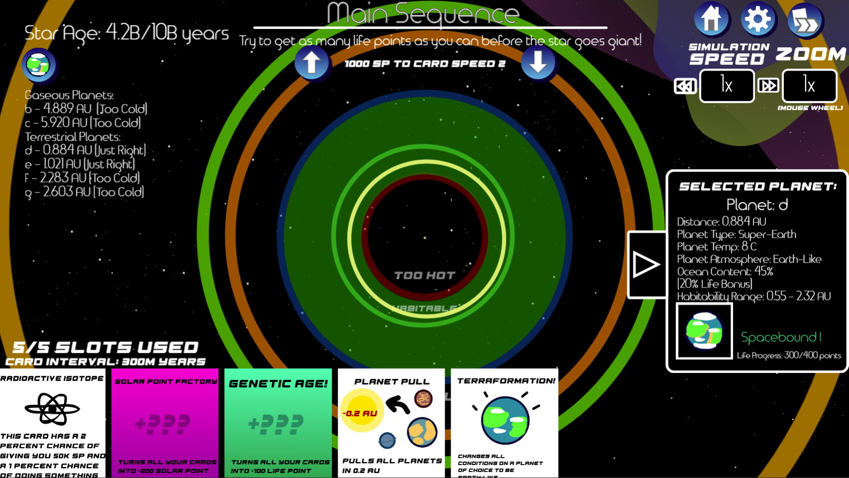 Deal of the Cosmos 3 is a solar system strategy game where your goal is to develop life using the cards in your hand! The more you evolve your life, the more points you'll score at the end! You can get bonus points for playing on bigger stars as well!