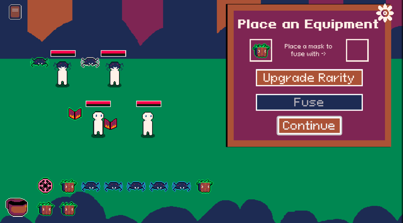 I found a duplication glitch when fusing. If you remove the first mask while in the fuse menu, the other mask is placed in your inventory twice.
