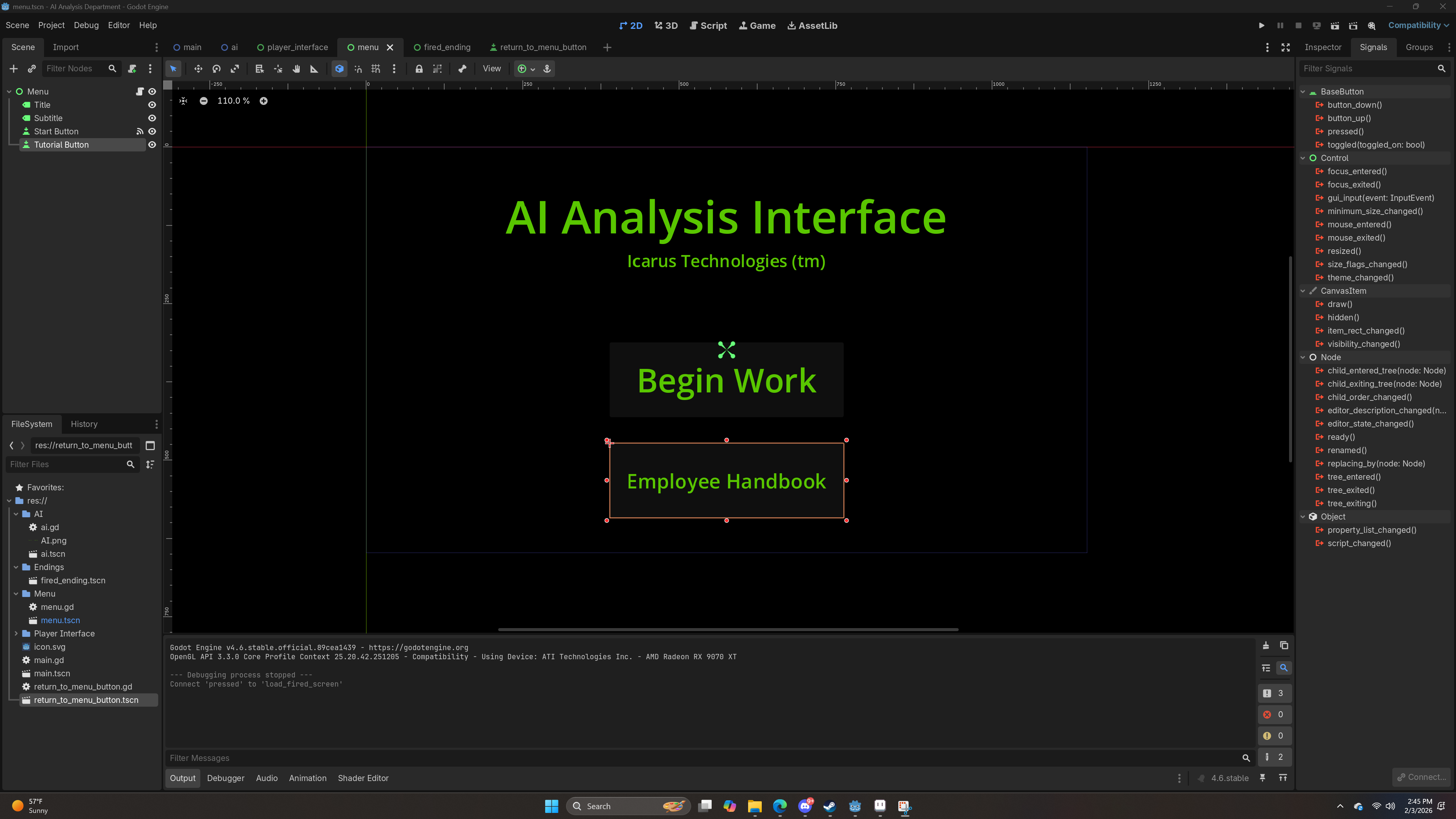 Everything was done using default godot physics, which I don't know all that much about, but learned a few things thanks to this project. There are a couple ways I nudged (or tried to nudge) the physics engine, for example adding sideways velocity to the ball if it hits the edges of the paddle, but that didn't really work too well by the time I needed to submit, unfortunately.