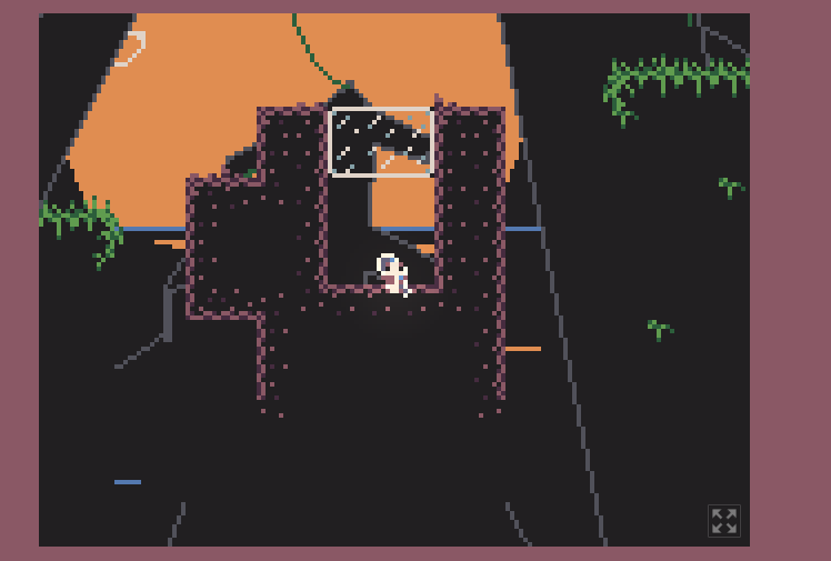 Two pieces of feedback: I think the one way platforms could use a little more clarity. I can see the one row of solid pixels for the 'solid' side and the side you pass through skips every other pixel, but I think which side is which could be made more clear. I also got stuck in the environment a couple times with the wave, the first time being the very first feather. I got stuck in the ground and needed to restart. Screenshot below.