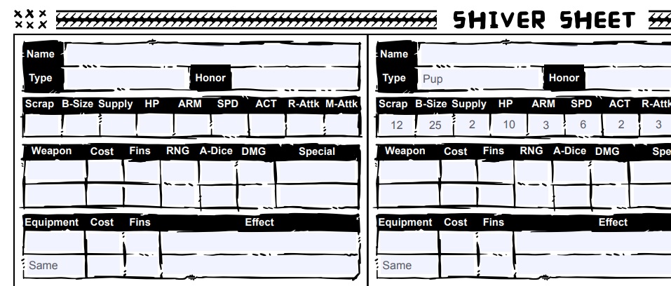 Slight issue with the Shiver Sheet, the 2nd Equipment slot for the first and second statblock is the same.