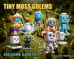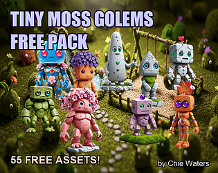 A free sampler of 2D moss golem assets. High-quality, pre-rendered sprites perfect for game jams and prototyping!
