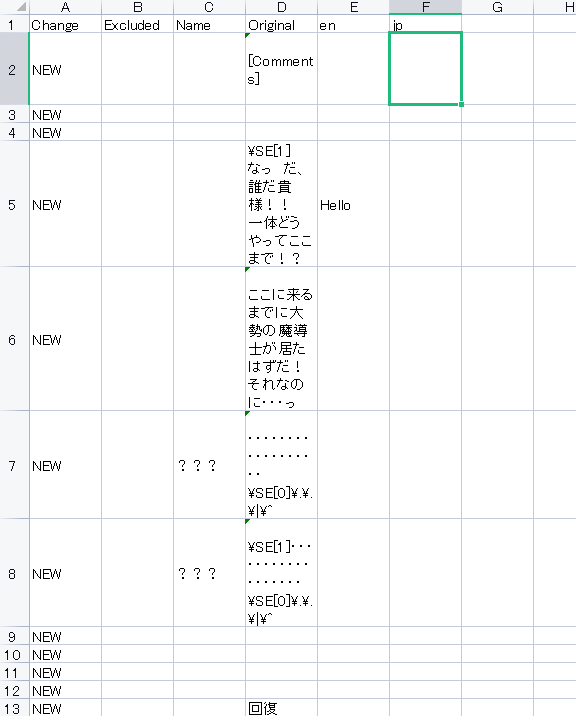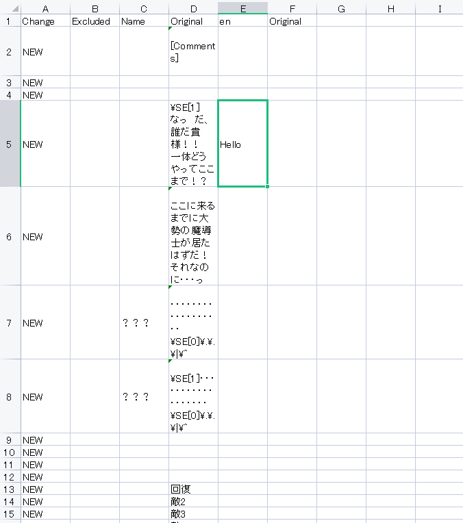 I’m sorry. I was trying to customize the title, menu, and options, and I just noticed something. I tried entering “Hello” in the en column of the CSV, but the Japanese text in the Original column still appears in the game. I would appreciate it if you could let me know how to resolve this. I have tried checking the plugin for translation, but since I don’t understand languages other than Japanese, I don’t fully understand how this plugin works. Also, I am writing this message using a translation tool, so I apologize if anything is unclear.