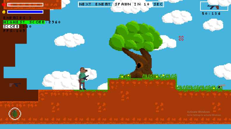 It's a 2D, single player, platformer, shooting game (Made with python)