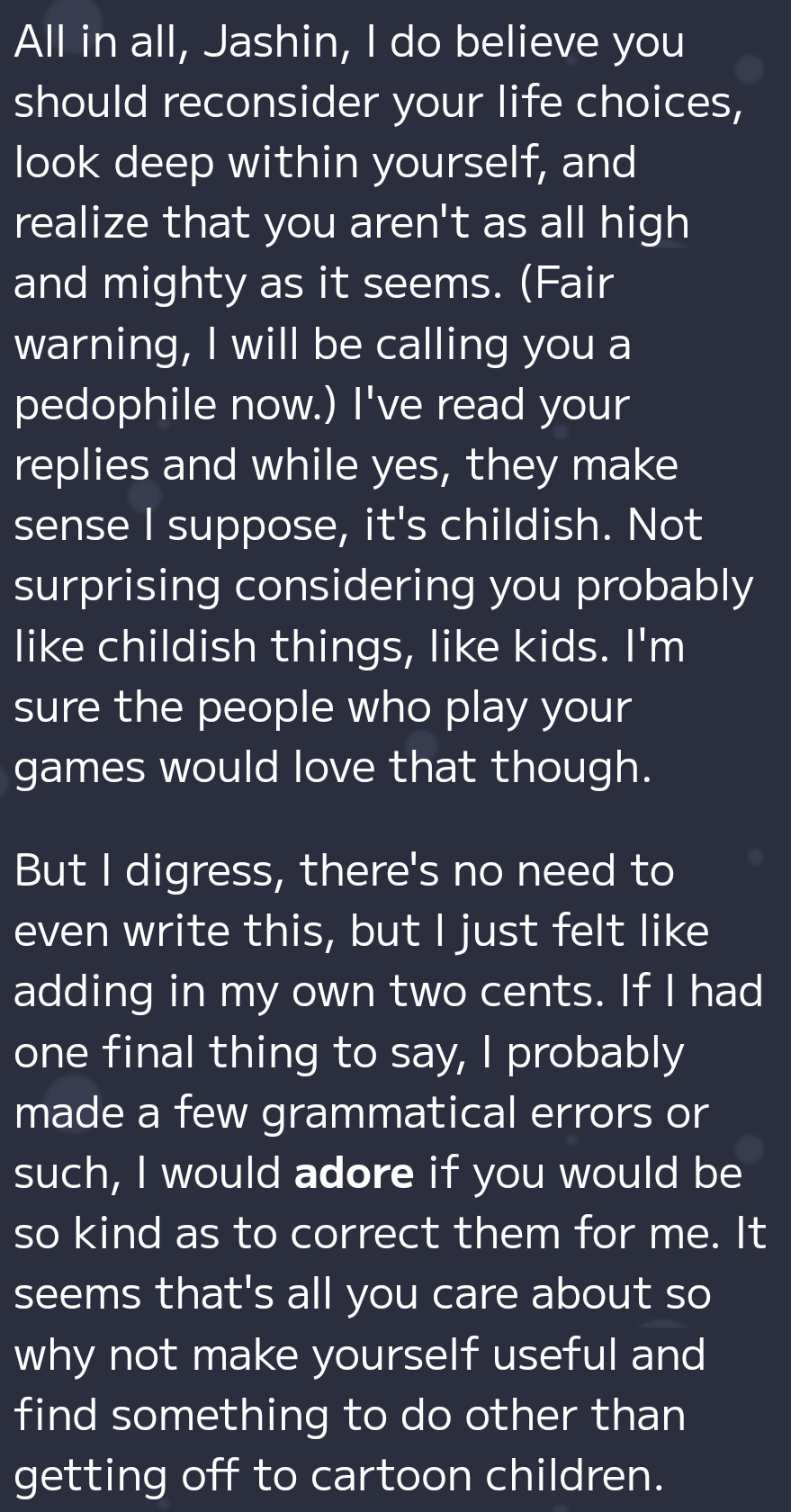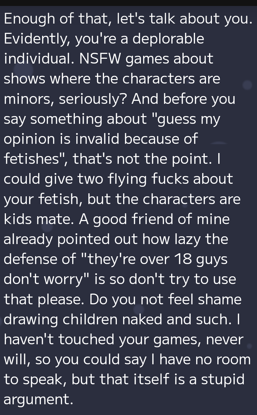 If this is "joke" or "playful banter" then just ignore whatever I said.