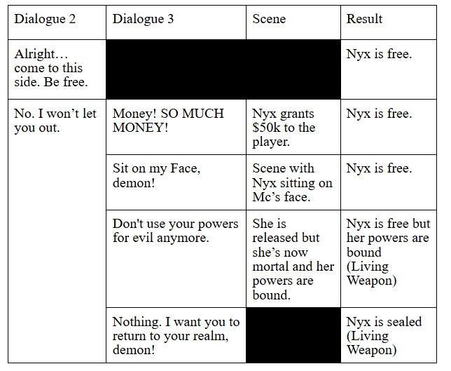 - Do the Spirit Fighting mini-game 1 more time and Nyx will appear once more (your choice of dialog doesn’t affect outcome but it'll have different dialogs):