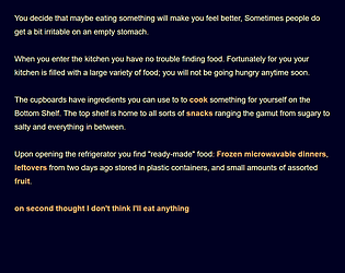 This game was very good. I feel like I came in expecting an erotic story but mostly ended up getting a dark introspection of trauma, isolation, depression, and love itself. I'm not mad at this at all though. Its pretty different from the fluffier more light-hearted stuff Nadia. It makes me think she might have been tapping into some kind of primal rage or trauma or something similar, and if that IS the case there I'm more than comfortable taking a look into this side of her whenever she is willing to share it. But let me not speculate on someone else's life.