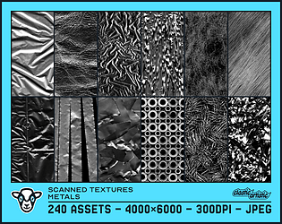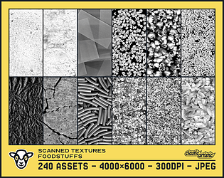 The Scanned Textures series features various real-life objects that have been digitally scanned and made ready to use in your creative projects. Each pack features 240 monochromatic texture assets split into 12 sets based on the type of object. Each asset is 4000×6000 at 300dpi to ensure a high level quality and are as JPEGs to ensure compatibility with your software of choice. Textures in this pack were created by using an Epson WorkForce WF-7715 to scan objects and Affinity to prepare assets