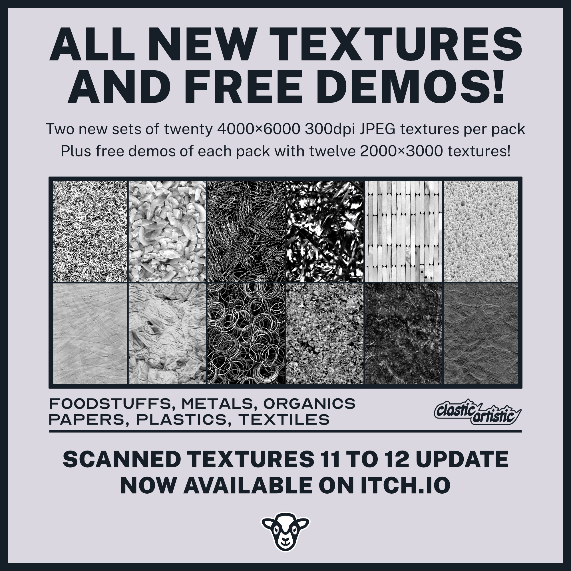 New update to all Scanned Texture asset packs! I've added two new sets of 4000×6000 300dpi textures to each!
