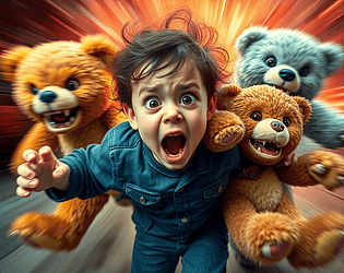 This game is about a kids nightmare, he has to go kill his plushes.