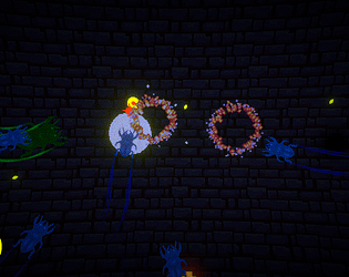 Thank you for the feedback! As a new game developer, I am definitely finding my strengths and weaknesses which showing my objectives to the players being the point I need to work on XD. Basically, I was hoping the player would notice they could nock the enemies into the pit and after bunching up a few make it to the other side. You would then shoot the computer which was the screen in the back with the black outline to "break the system" and the twist was you are actually the blue screen of death for a computer while the red was the antivirus trying to hold you back. Good to know about the control bug need to do more testing after build. Also loved how you named my enemies disco butterflies I had no specific idea for them but that works perfectly. Thanks again for the streaming of my game!