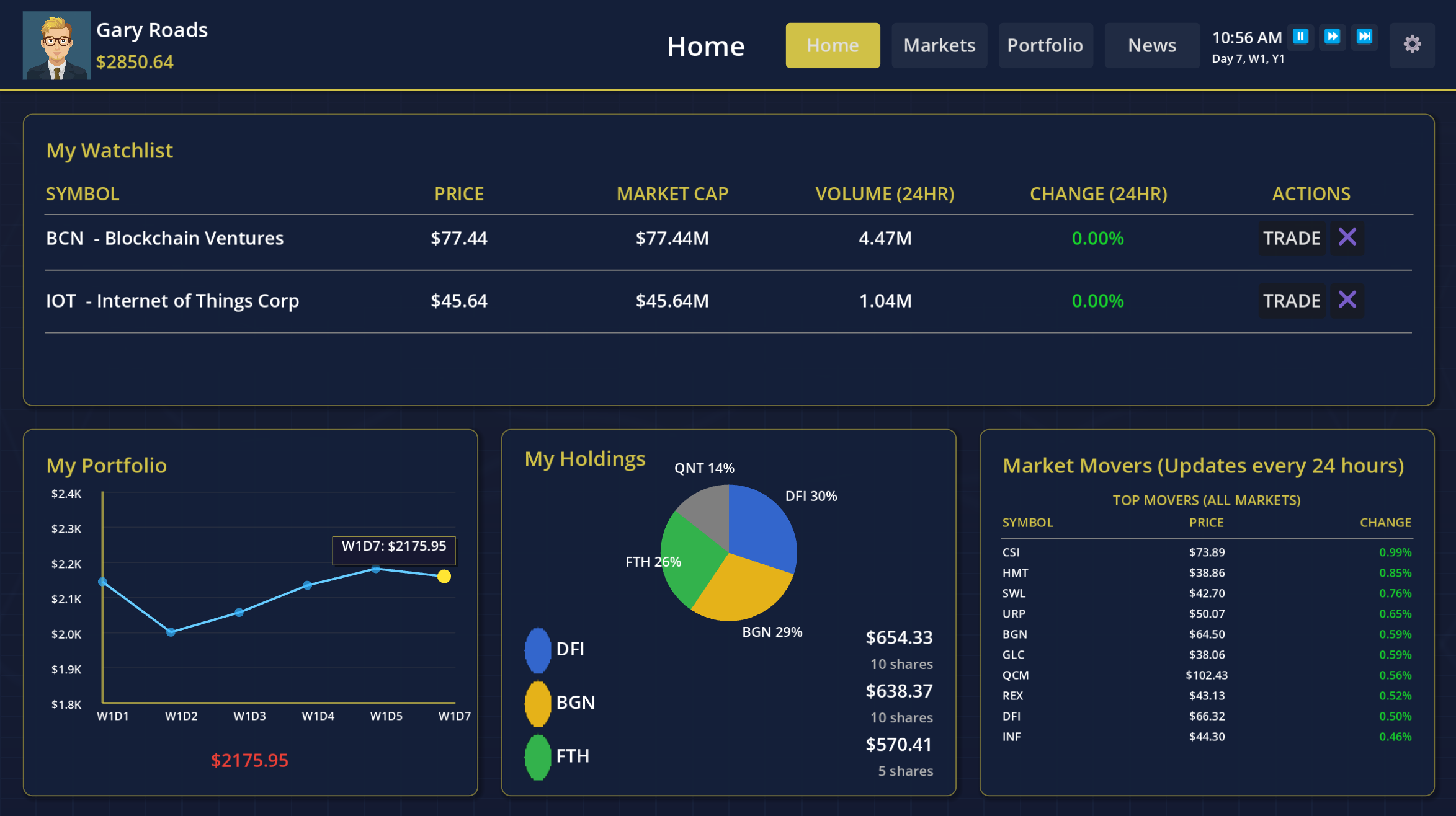 My first public project is a Stock Market Simulator — I built the initial playable demo in just 2 days using Godot 4.4 and a bit of AI-powered momentum. The demo’s up now on Itch if you want to try it: 🔗 Play the Demo Here