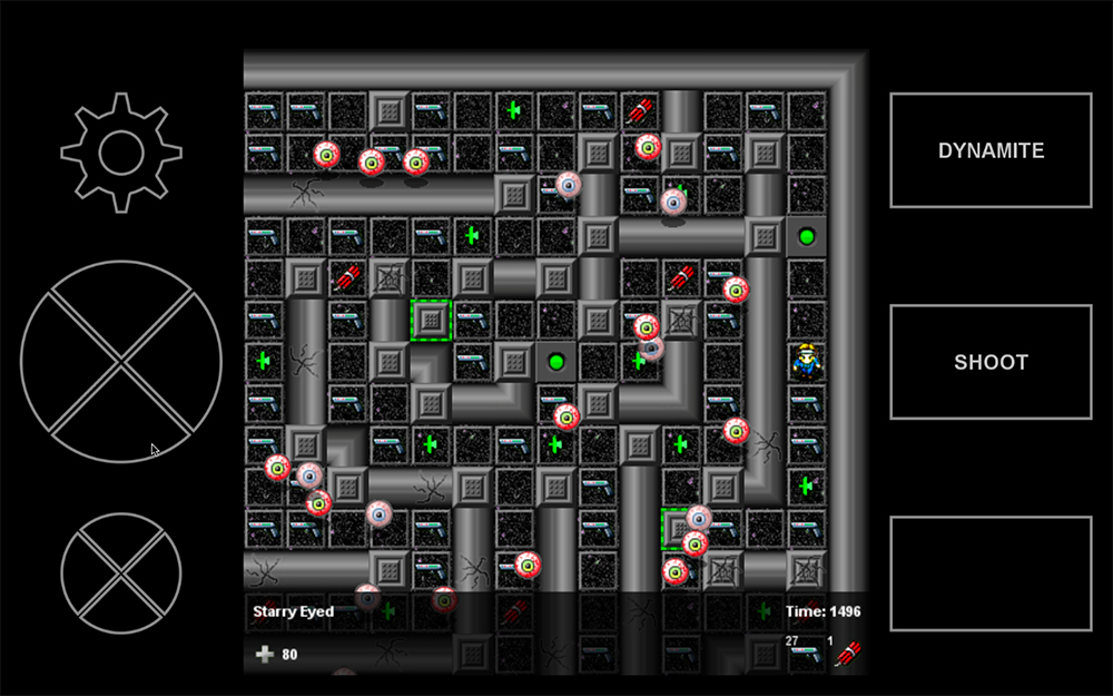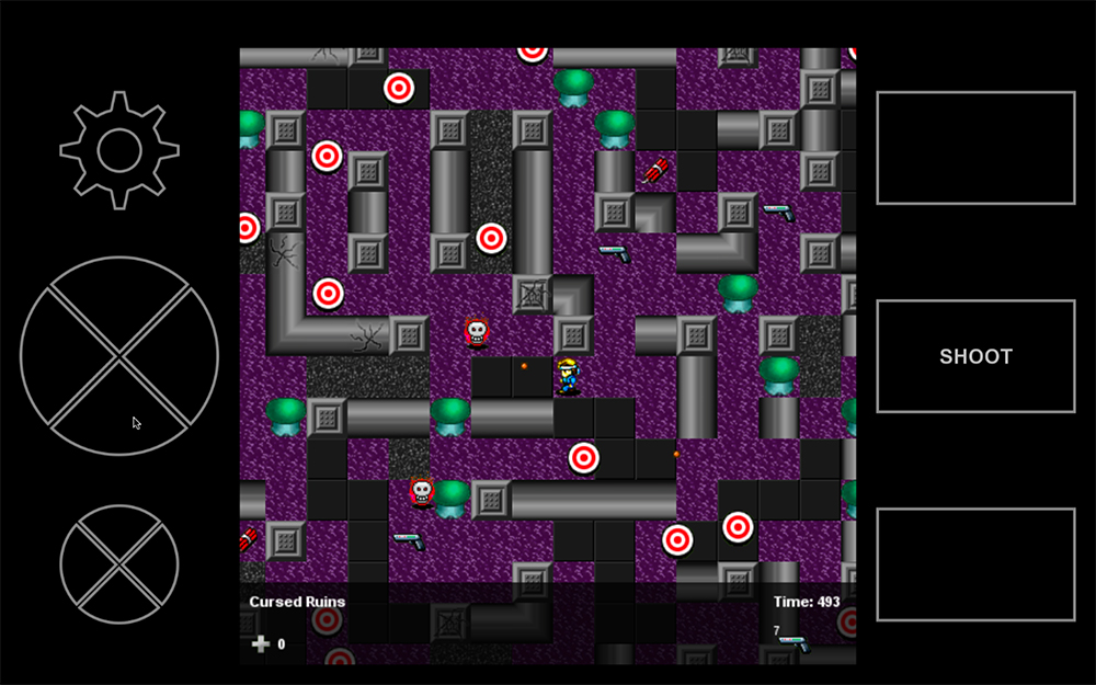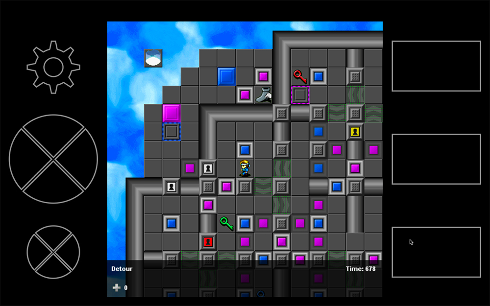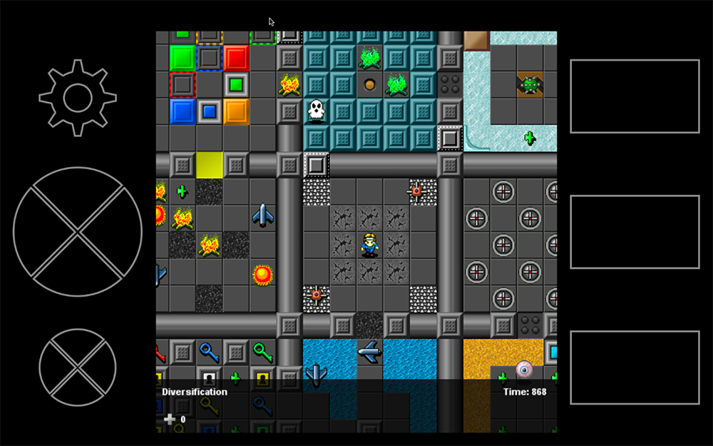 Test your action/puzzle skills in Challenge Go, a retro action/puzzle game. The goal is simple: fight your way through each level to the portal to reach the next area. Get lost in forests, swamps, deserts. Walk over the sky in ever-changing weather and light, and even navigate the depths of space. Sneak through cursed ruins, war zones, dark labyrinths and haunted houses. Use items to run faster, open doors, pass hazards, and destroy. 100 levels total to challenge even the most dexterous. Inspired by Chip's Challenge, it contains many tiles equivalent to those from CC1 and CC2, some with behavioral variations, in addition to a number of new tiles. It has touchscreen capability on all platforms it was released for. Online high scores are per level and shared between platforms.