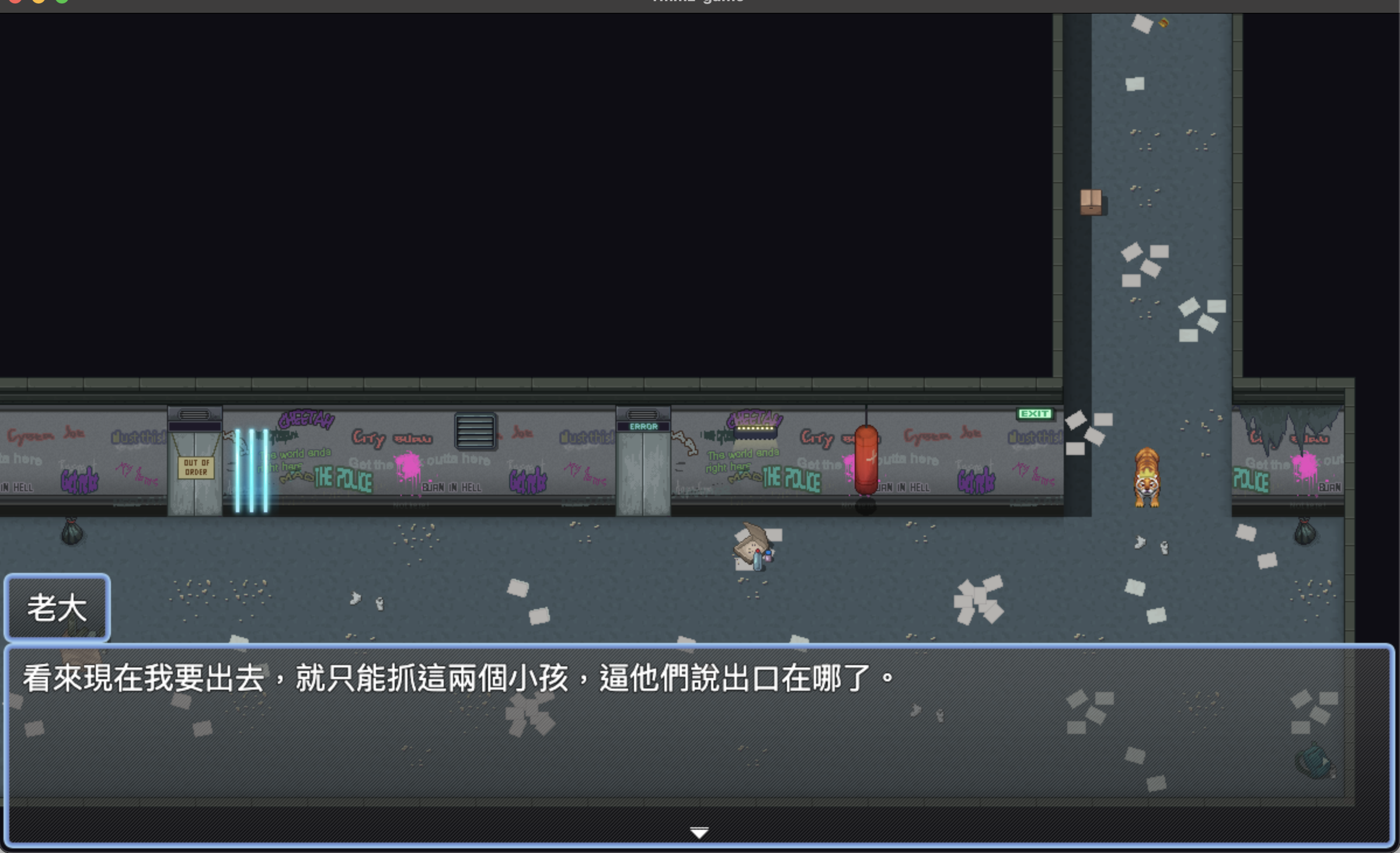 機制上最初是想要做出一點點解謎,但仔細思考過後可能剩下6小時可以製作於是朝向更簡單的方式讓玩家達成某些條件就跑結局或是到定點就走結局