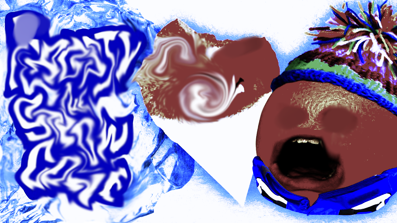 *The part of him with open flesh gets shaved ice stuck in it causing his body to get frost bite.*