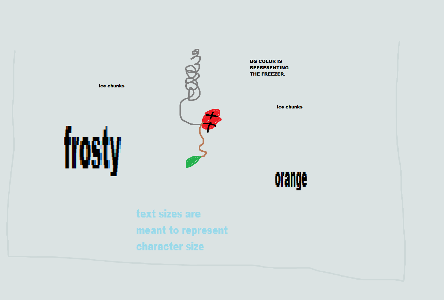 "One last little melody.." "Well boy, ya out done me." "Alway's remember tho.." Frosty slowly walking away Just about to escape "I'll come back some day.." "Copper's." SCENE OF FROSTY FALLING DOWN TO THE FLOOR Frosty barely alive, crawls up to the counter, and puts himself in the freezer to stay alive. Frosty looks over Corpses of other snowcones "Ah, shit.." FREEZER ERROR. FREEZING TEMPORARILY DISABLED. "NO!! NONONON, OH GOD NO" Frosty melts in pain FREEZER ISSUE RESOLVED. "..." "Why does a freezer even have a voice.." "Eh, smart tech bullshit." Frosty crawls toward a snowcone corpse and shoves together more snow cone onto him. "I'll come back." "Again."