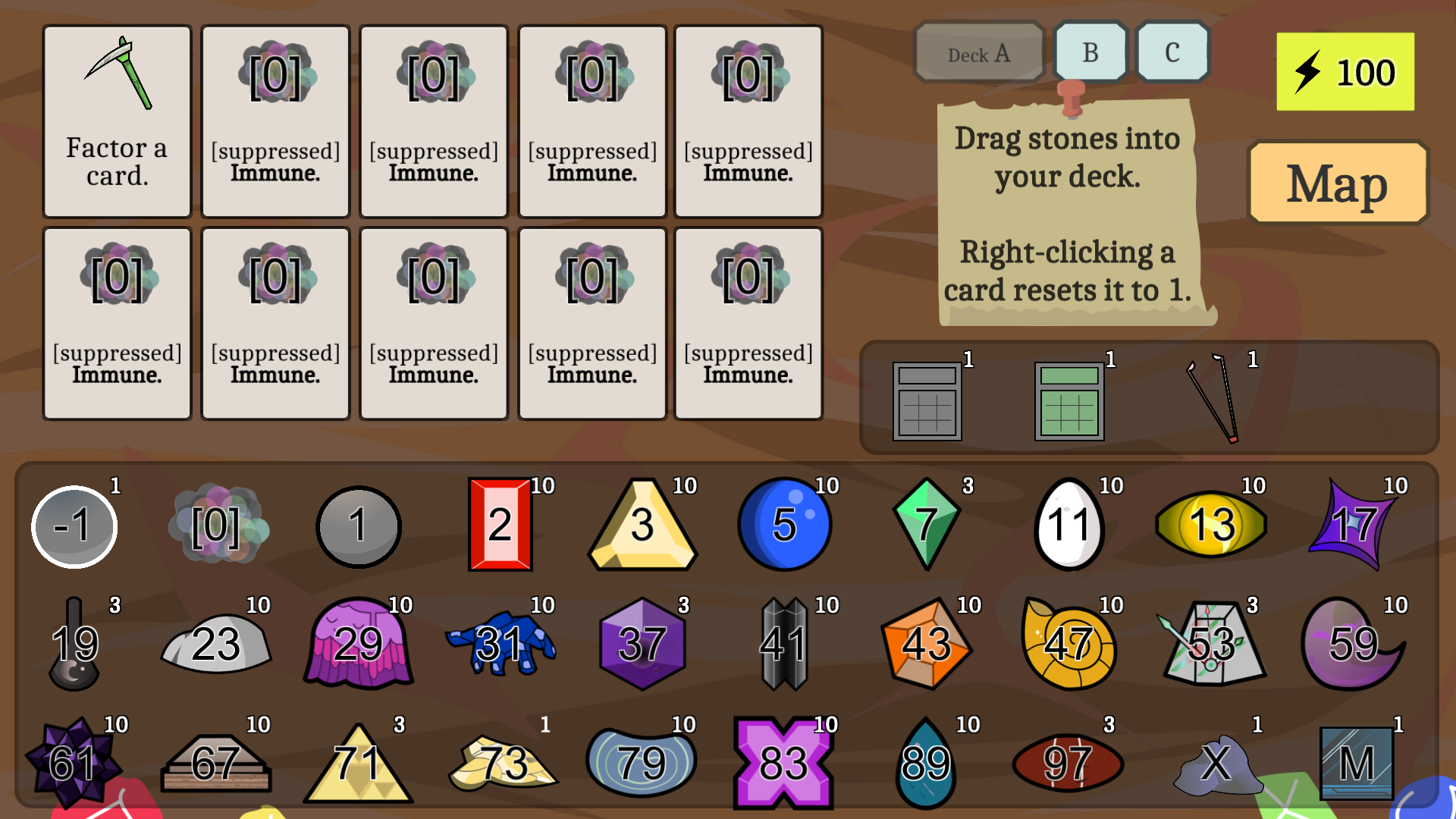 (factorizing a null-stone yields random prime rocks, so this deck is basically just completely random stones every time you play. fun! )
