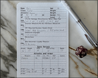 An unofficial character sheet for OSRIC 3 that fits on a 4x6 index card for compact play.
