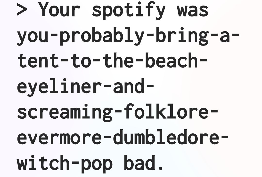 I've already played the demo about ten times I want to play it more times but suddenly I remembered that Spotify Wrapped existed and that it hasn't been released yet, so in the meantime a random bot ruined (I mean, I criticize in a funny way) my musical tastes. I also want to leave here some of the parts of the result that made me laugh the most(• ▽ •;)