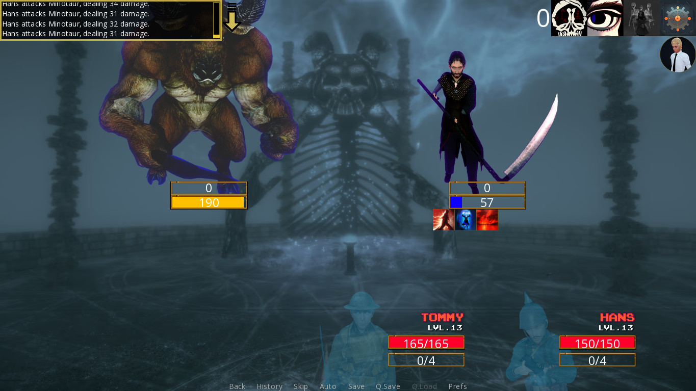 and im not sure but i think the underworld fight have some problems too, Hans can somehow attack the Minotaur more than 1 time and can continue hit even both of the enemy health reach 0, the battle also not end too