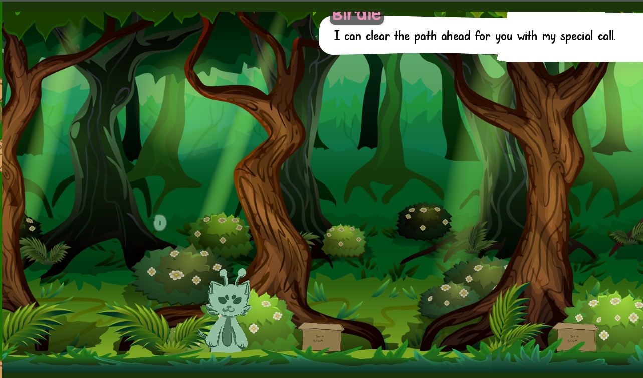 Really adorable game, love the art and the characters, though I do wish I could move a bit while shooting as stopping and starting constantly to aim at the boxes felt a little awkward. Also I had a strange interaction where i was able to move after the bird got rid of the tree, and the textbox stayed on screen in the upper right.