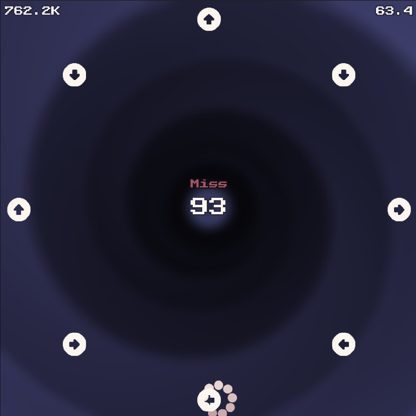 As a bit of feedback, it would be good if there was a count-in at the start of the song on each loop, since it's really disorienting when the thing changes directions, or right after you exit the starting menu. Might also be good to have a small animation, like a color flash, when a note changes, so that it doesn't come as such a surprise when they start changing. I'll also echo someone else and say that color-coding the arrows would help the readability. I think the difficulty is just right for a game jam game though, and the song is pleasant. Good stuff.