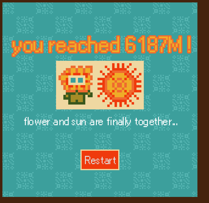 This is a fun interpretation of the theme, and the goal is very clear and straightforward. However, there is a bug that allowed me to reach an unfathomable height.