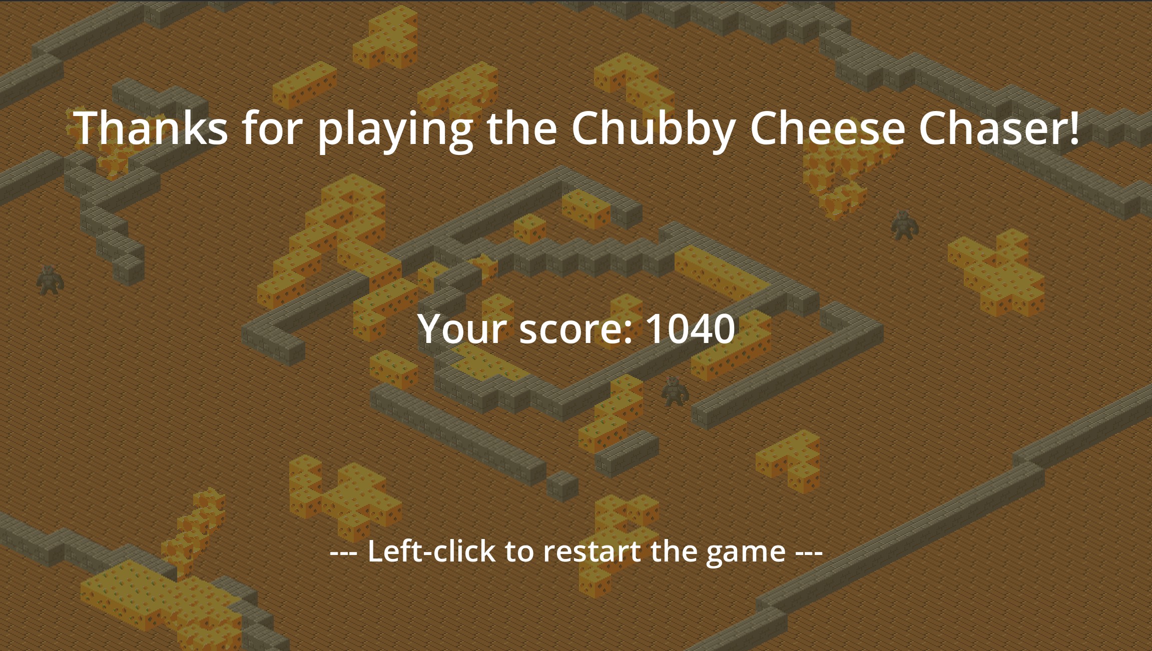 The gameplay loop personally was a bit too slow paced for my tastes, having to eat a lot of cheese feels more like a task than a challenge. The enemies are a nice variation but they need to do something slightly more interesting. Somehow. Not sure.